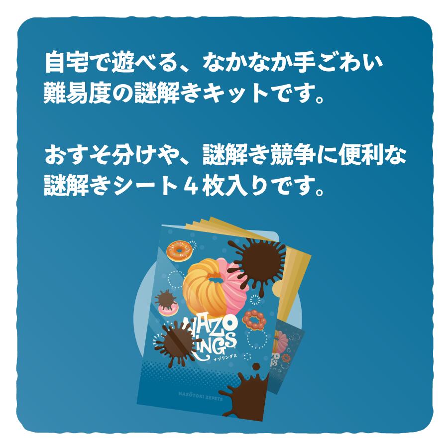 架空のドーナツ屋さん「ナゾリングス」のトレイシートがコンセプトの、初心者向け謎解きです。